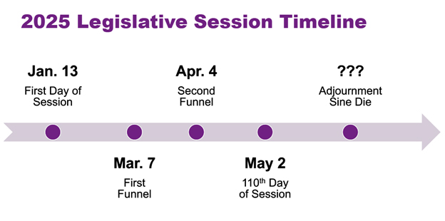 Legislators will likely focus primarily on property tax reform and budgeting. With less than one month left until the 110th day of session, both chambers and the Governor’s office must agree on a final budget bill to be signed within 30 days of adjournment. The full 2025 Session Timetable can be found here.
