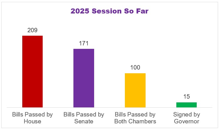 Legislators will likely spend the majority of time focusing on the remaining outstanding issues, including tax credit reform, property taxes, energy, and budgets. With the number of days dwindling until the 110th day of session, both chambers and the Governor’s office must agree on a final budget bill to be signed within 30 days of adjournment. The full 2025 Session Timetable can be found here.
