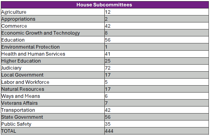 During the first six weeks of the 91st General Assembly, lawmakers advanced a total of 774 bills out of subcommittee. Nearly half of those subcommittee meetings occurred in the final two weeks before the funnel deadline. A clear illustration of how compressed and deadline-driven the legislative process becomes this time of year.