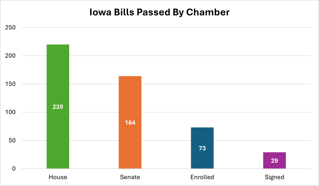 After relatively short weeks of floor action and light debate calendars in both chambers, there is progress towards pushing the legislature toward adjournment. Last week’s Senate debate calendar contained several high-profile issues, including property taxes and the Governor’s Iowa “MAHA” bill, and the Senate Appropriations Committee met to pass several budget drafts after announcing a target in Week 12.